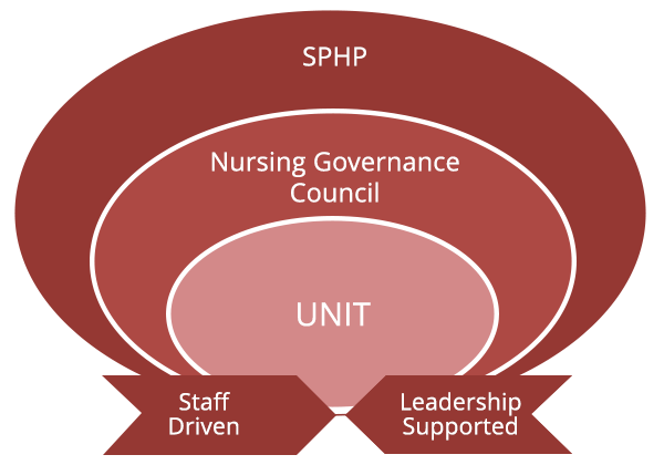 Each unit/department has a shared governance council that mirrors the work of the NGC. Unit/department councils have representation at NGC and report out monthly on unit progress during this hospital-wide council.