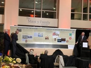 SPHP leaders presented two new eight-foot panels during a reception held in the hospital’s Massry Family Atrium. The new additions chronicle the past 15 years in the institution’s history. The full, 13-panel Wall of History highlights major milestones that collectively have positioned St. Peter’s Hospital as one of upstate New York’s largest and most respected healthcare providers.