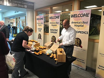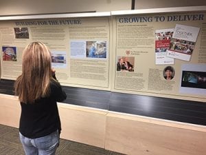 Two new eight-foot history panels, which were unveiled during the Friday event, were temporarily erected in the hospital’s Mercy Conference Rooms for staff to review and admire. The new additions chronicle the past 15 years in the institution’s history.
