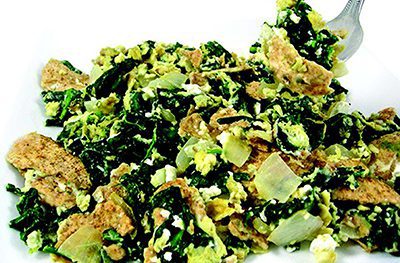 “Skinny” Matzo Brei with Spinach
