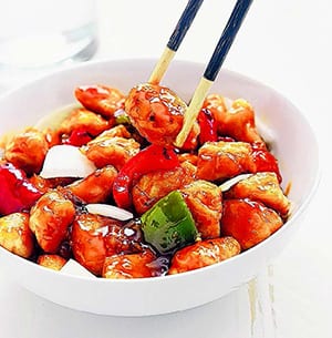 Add sugar, vinegar, soy sauce, garlic powder, onion salt, and ketchup to a medium sauce pan. Stir and bring to a boil. In a small bowl whisk together the 1 tablespoon corn starch and cold water until dissolved. Add to sauce pan and stir until thickened, then reduce to low heat.
