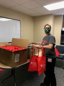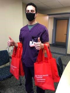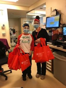 A team of physical therapists, information associates, nurses, and rehab aides worked to assemble and deliver the bags to the COVID positive units, with the first batch delivered in time for Christmas. Staff will continue to deliver bags to patients over the next few weeks.