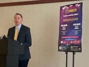 Dr. Duncan Savage, chief of radiation oncology at St. Peter’s Cancer Care, was one of several speakers at a news conference announcing details of the 2022 Sock Out Cancer® Benefit Concert.