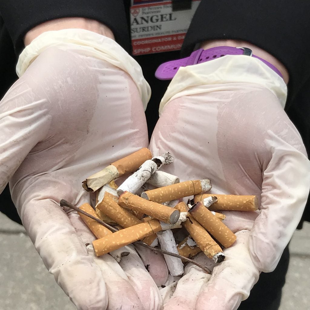 Volunteers, which included students from Mercy Cares for Kids, collected dozens of bags of garbage including hundreds of cigarette butts and even a discarded hub cab! Participants were able to swap their trash for a packet of flower seeds to plant this Spring.