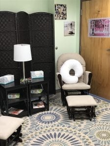 The comfortably furnished rooms at both locations offer a more private space to breast- or bottle-feed, or express breastmilk. Outfitted with a rug, comfortable chairs, soft lighting, colorful artwork, and a white noise machine to drown out ambient sounds, these lactation rooms will serve many parents and their children well.