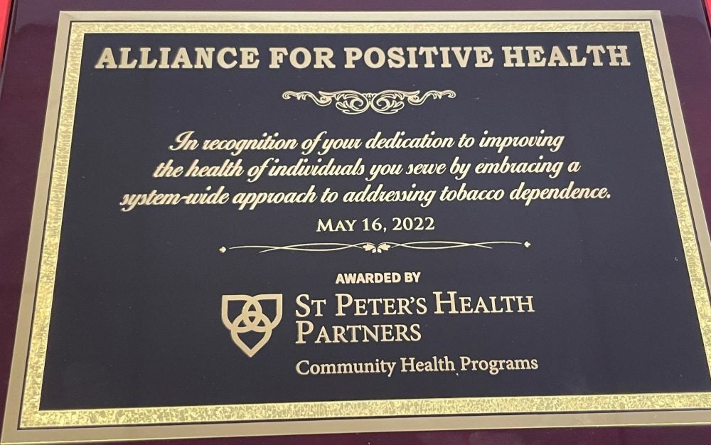 St. Peter’s Health Partners Honors Alliance for Positive Health for its Tobacco Cessation Efforts