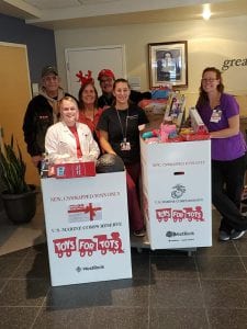December 20, 2019For the fifth year in a row, the St. Peter’s Hospital Pharmacy Department held a toy drive to benefit the U.S. Marine Corps Reserve Toys for Tots Program. The pharmacy placed collection boxes in the department and other locations at St. Peter’s Hospital, filling four boxes in total with new, unwrapped toys. A special shout-out to the departments of Medical Imaging and Environmental Services, which each filled a box on their own.