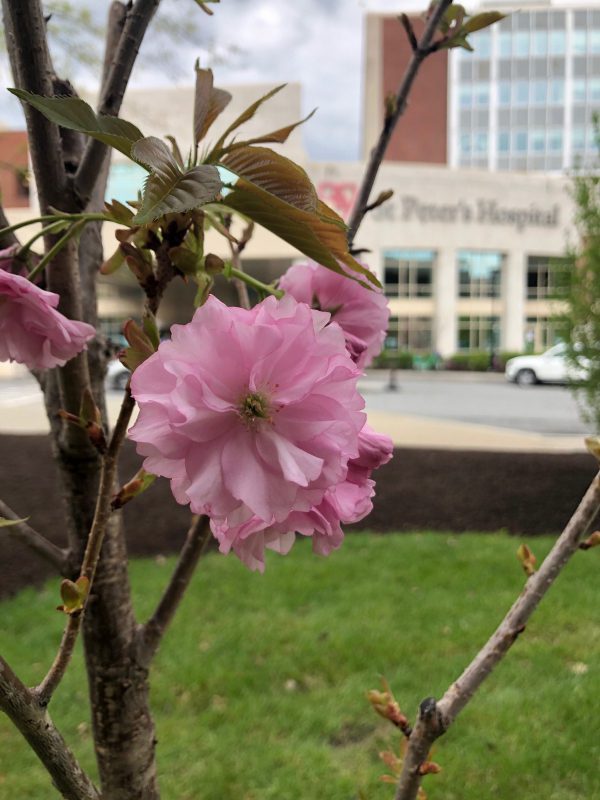 The tree, planted on May 3 outside St. Peter’s Hospital, is one of two purchased by the St. Peter’s Health Partners Wellness Committee to honor the struggles our colleagues and our community have endured throughout the past year. The other tree sits atop the hill overlooking the Samaritan Hospital – St. Mary’s Campus.