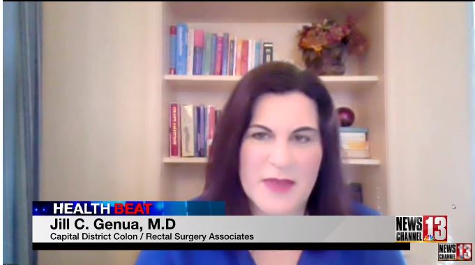 March 4, 2021Jill Genua, M.D., of Capital District Colon & Rectal Surgery Associates, appeared on WNYT’s Health Beat with Benita Zahn to discuss colorectal cancer risk factors, symptoms, and prevention. Dr. Genua also talked about the increase in the number of younger people being diagnosed with the disease. March is Colorectal Cancer Awareness Month.