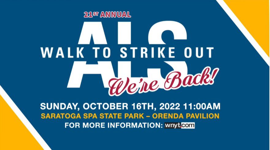 The St. Peter’s ALS Regional Center is hosting its 21st annual Walk to Strike Out ALS on Sunday, October 16, at 11 a.m. in the Saratoga Spa State Park. For more information: https://www.walktostrikeoutals.org/.