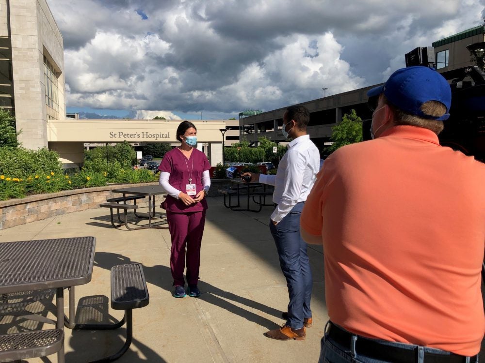 June 17, 2021Maura Tuffey, RN, nurse manager at St. Peter’s Hospital, was interviewed by WTEN for its story on New York state reaching the 70% first dose COVID-19 vaccination benchmark. Tuffey spoke about the challenges of the past year in health care and hope for a COVID-free future.